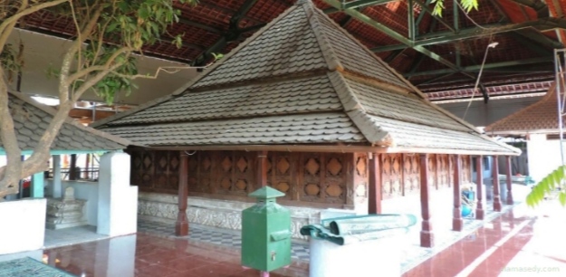 Inskripsi berbentuk medalion lonjong dengan garis tengah kurang lebih 5 s.d 7 cm, terpasang di atas pintu 30 buah sedangkan yang terpasang di tiang utama ada 44 buah, terbuat dari kaca dan logam, seluruhnya berjumlah 74 buah yang berisi tulisan nama-nama nabi pada soko guru, dan malaikat pada kusen pintu bagian atas.