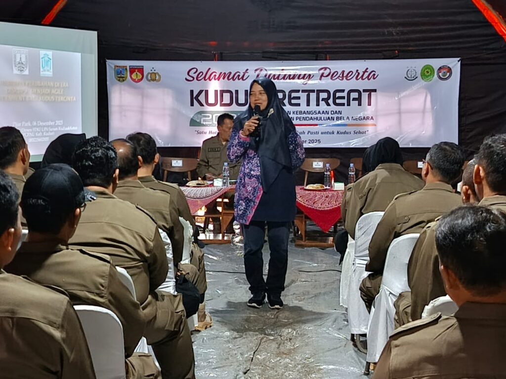 Retreat yang diselenggarakan Pemerintah Kabupaten Kudus melalui Badan Kesatuan Bangsa dan Politik (Kesbangpol) ini menjadi upaya untuk memperkuat wawasan kebangsaan sekaligus meningkatkan profesionalitas para pemimpin daerah. Sinergi lintas sektor menjadi kunci untuk mewujudkan Kudus yang sehat dan maju. “Dengan satu hati dan satu tujuan, kita bisa menjejakkan langkah pasti untuk masa depan Kudus,”