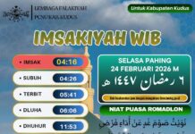 Ramadan Jadwal Imsakiyah untuk Kudus dan Sekitarnya, 17 Ramadan 1445 H 27 March 2024 0 912 Share on Facebook Tweet on Twitter Comments Share this:Click to share on WhatsApp (Opens in new window)Click to share on Facebook (Opens in new window)Click to share on Twitter (Opens in new window)Click to share on Telegram (Opens in new window) Related