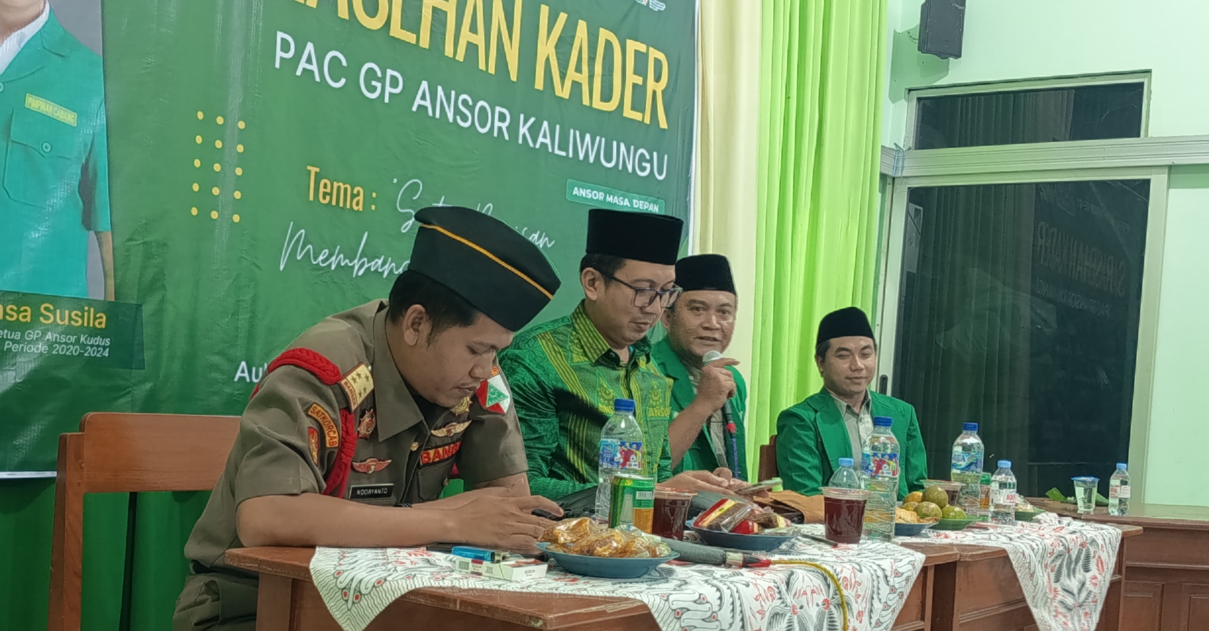 KUDUS,Suaranahdliyin.com – Dalam rangka peringatan hari lahir ke-91, Pimpinan Anak cabang (PAC) Gerakan Pemuda Ansor kecamatan Kaliwungu menyelenggarakan sarasehan kader di gedung MWC NU setempat, Senin malam (13/5/2025). Kegiatan ini menghadirkan tiga nara sumber, ketua PC GP Ansor Kudus Arif Mustain, Kasatkorcab Banser Kudus Noryanto dan mantan ketua Ansor Kudus Dasa Susila.
