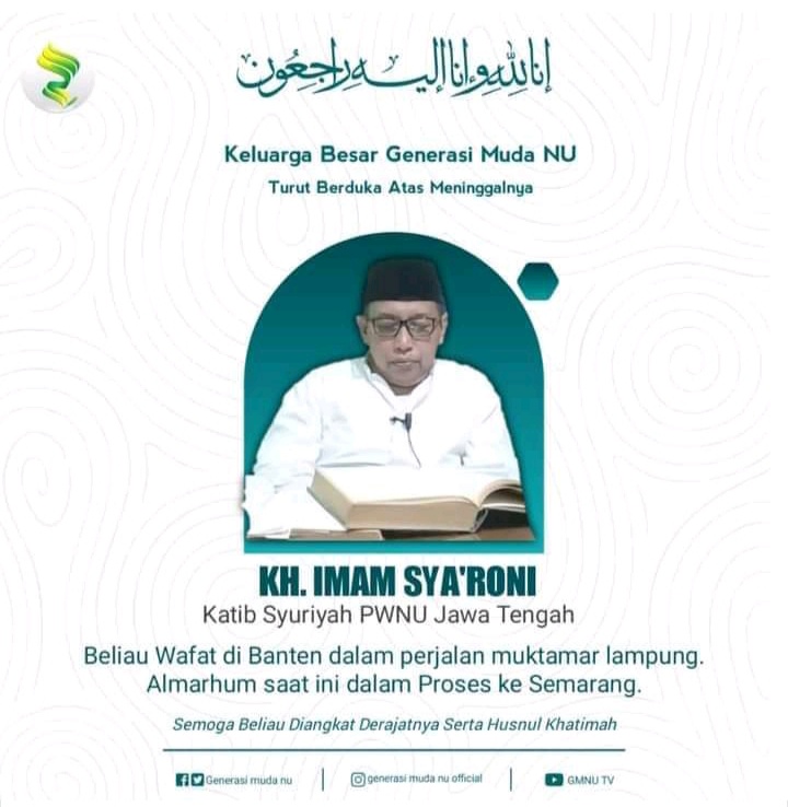 Adalah KH Imam Sya’roni (Katib Syuriah PWNU Jateng), yang pada Senin (20/12/2021) ini sekira pukul 05.30 WIB mengembuskan napas terakhirnya di RSCM Jakarta Pusat.