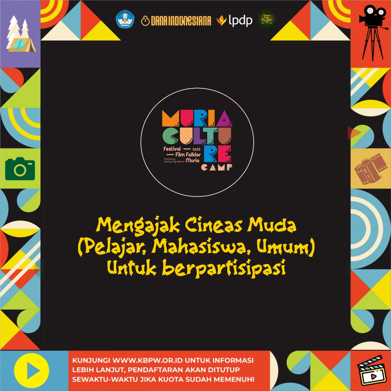 Program Kemah Budaya dan Festival Film Folklore ini diharapkan dapat menjadi inspirasi bagi banyak pihak untuk terus mengeksplorasi potensi dan berkarya.