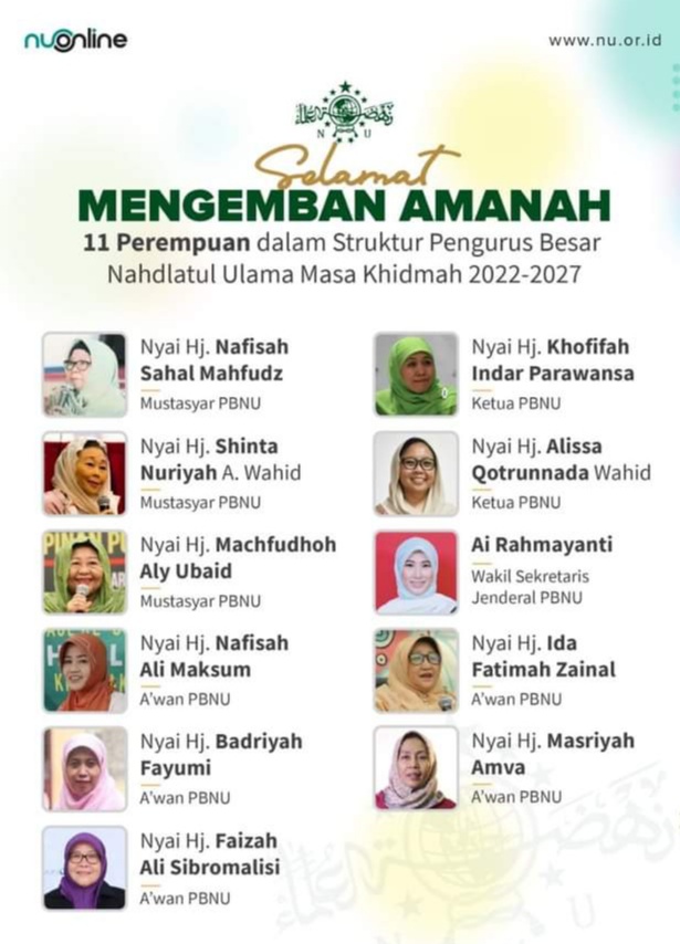 Selanjutnya, PBNU mengajak para tokoh perempuan yang mempunyai kiprah dan peran yang besar di Indonesia.