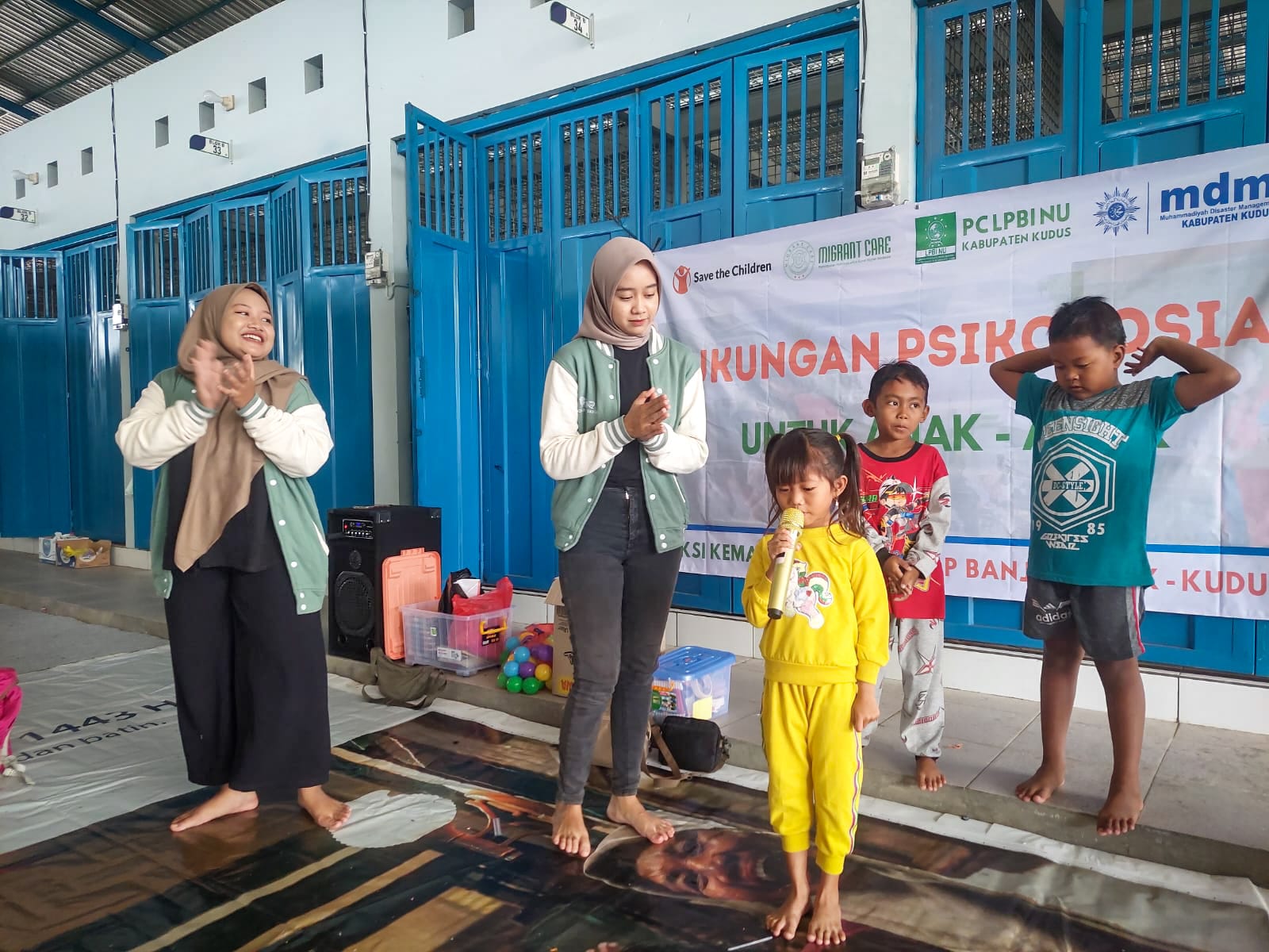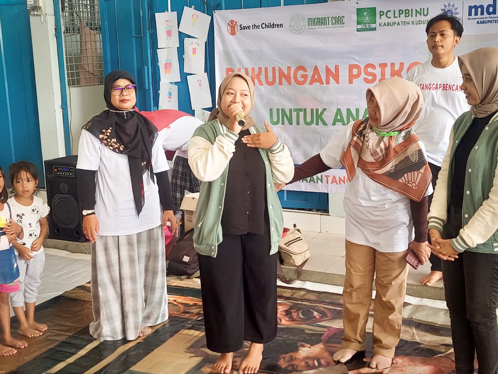 “Lesbumi juga mengajak para pengungsi bermain bersama serta memberikan beberapa doorprice menarik. Semua ini bertujuan menghilangkan kesedihan, dan kejenuhan para pengungsi selama berada di posko,”ujar ketua Lesbumi Kudus Abud SB Runcing.