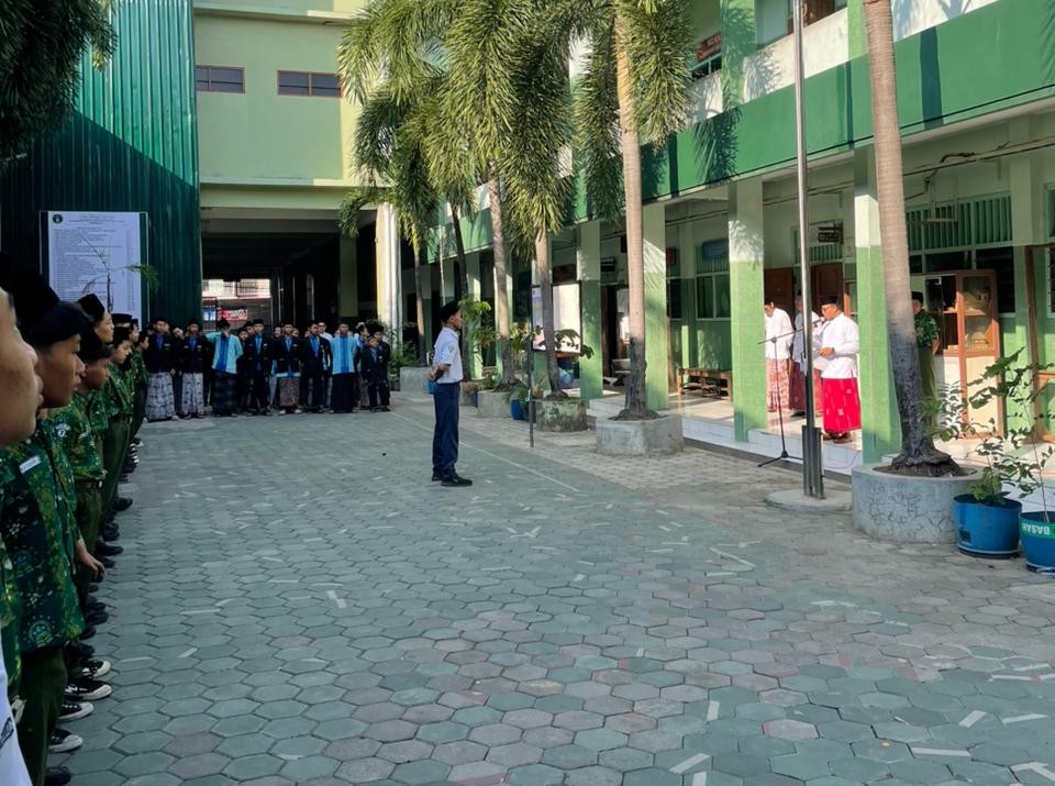 Upacara dilangsungkan di halaman madrasah pada Ahad (17/8/2025), denga inspektur upacara (Irup) Salim SAg MPd, kepala MTs NU TBS Kudus.