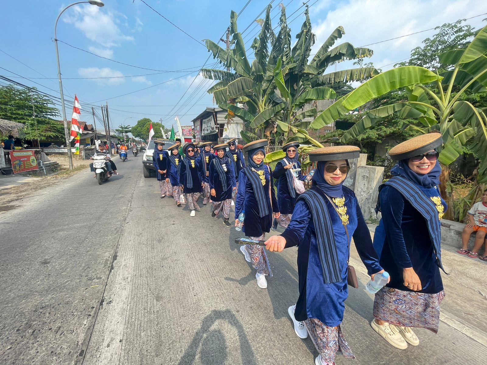 Mereka mengikuti kirab dengan jalan kaki sejauh kurang lebih 3 kilometer, persama para peserta lain dari berbagai elemen masyarakat dan kantor/ instansi.