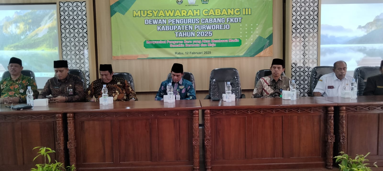 Kegiatan Muscab DPC FKDT Kab Purworejo yang diselenggarakan di aula Pusat Layanan Haji dan Umroh dihadiri oleh Wakil Sekjen DPP FKDT, Akhmad Sururi.
