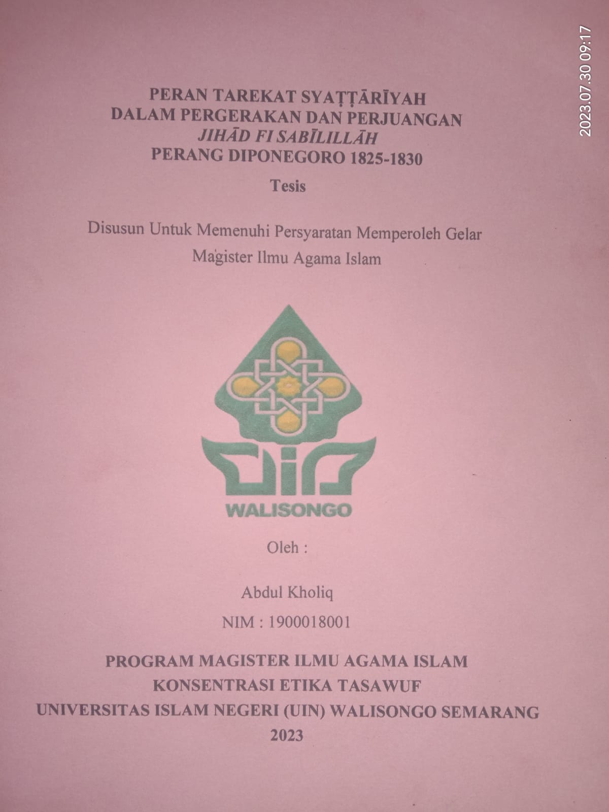 KUDUS, Suaranahdliyin.com – Ada sebuah tesis menarik yang dikaji oleh salah satu mahasiswa Program Pascasarjana UIN Walisongo Semarang, belum lama ini. Yaitu tesis yang berjudul “Peran Tarekat Syattariyah dalam Pergerakan dan Perjuangan Jihad fi Sabilillah Perang Pangeran Diponegoro (Perang Jawa) 1825 -1830”.