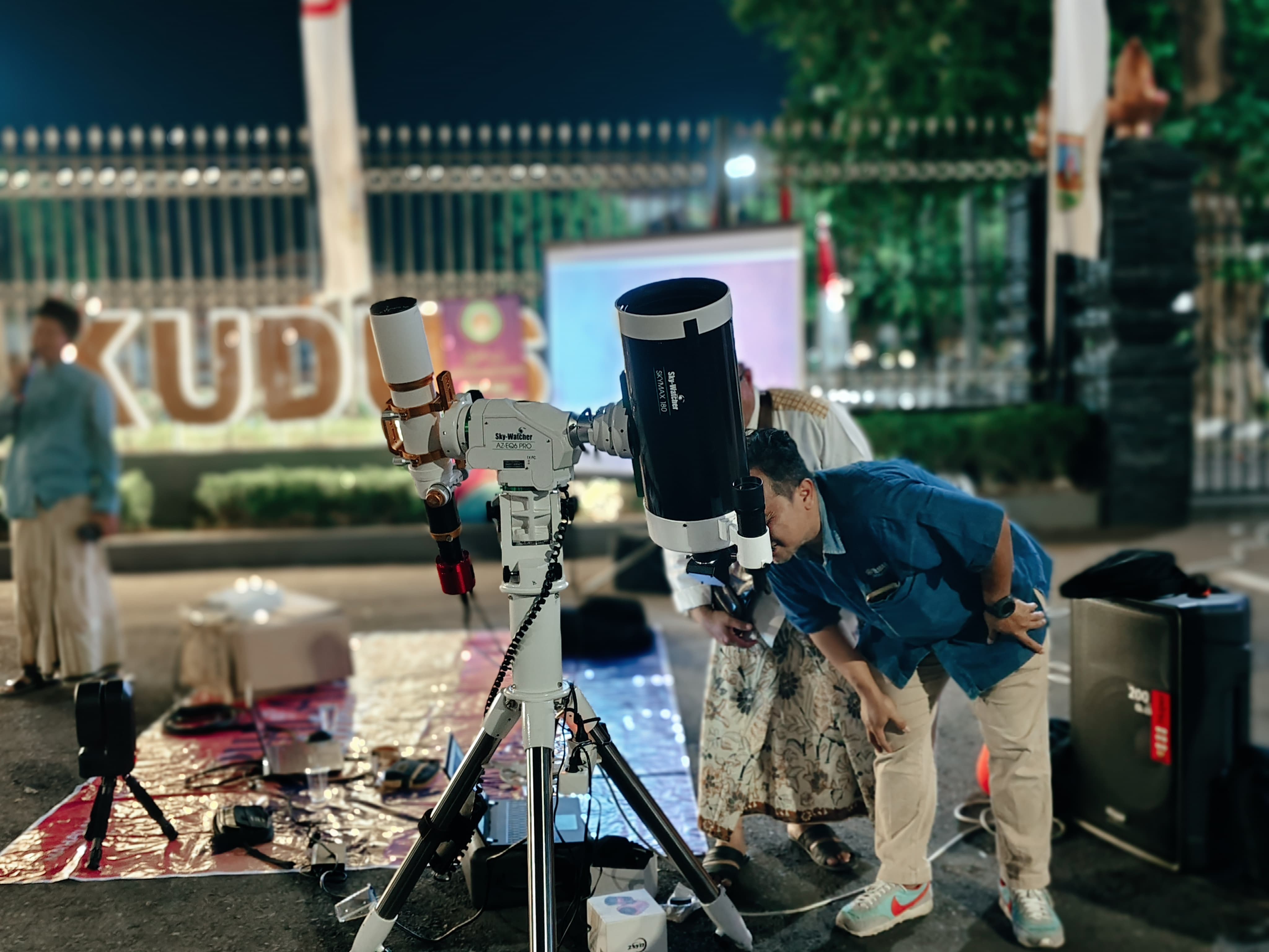 “Malam ini sangat spesial, karena tidak setiap hari Tim Falakiyah TBS Kudus hadir di depan pendapa Kabupaten Kudus untuk melakukan pengamatan bulan internasional. Ini tidak bisa setiap hari dilakukan. Dan pengamatan bersama NASA ini juga tidak di semua daerah ada,” ujar Kiai Salim.