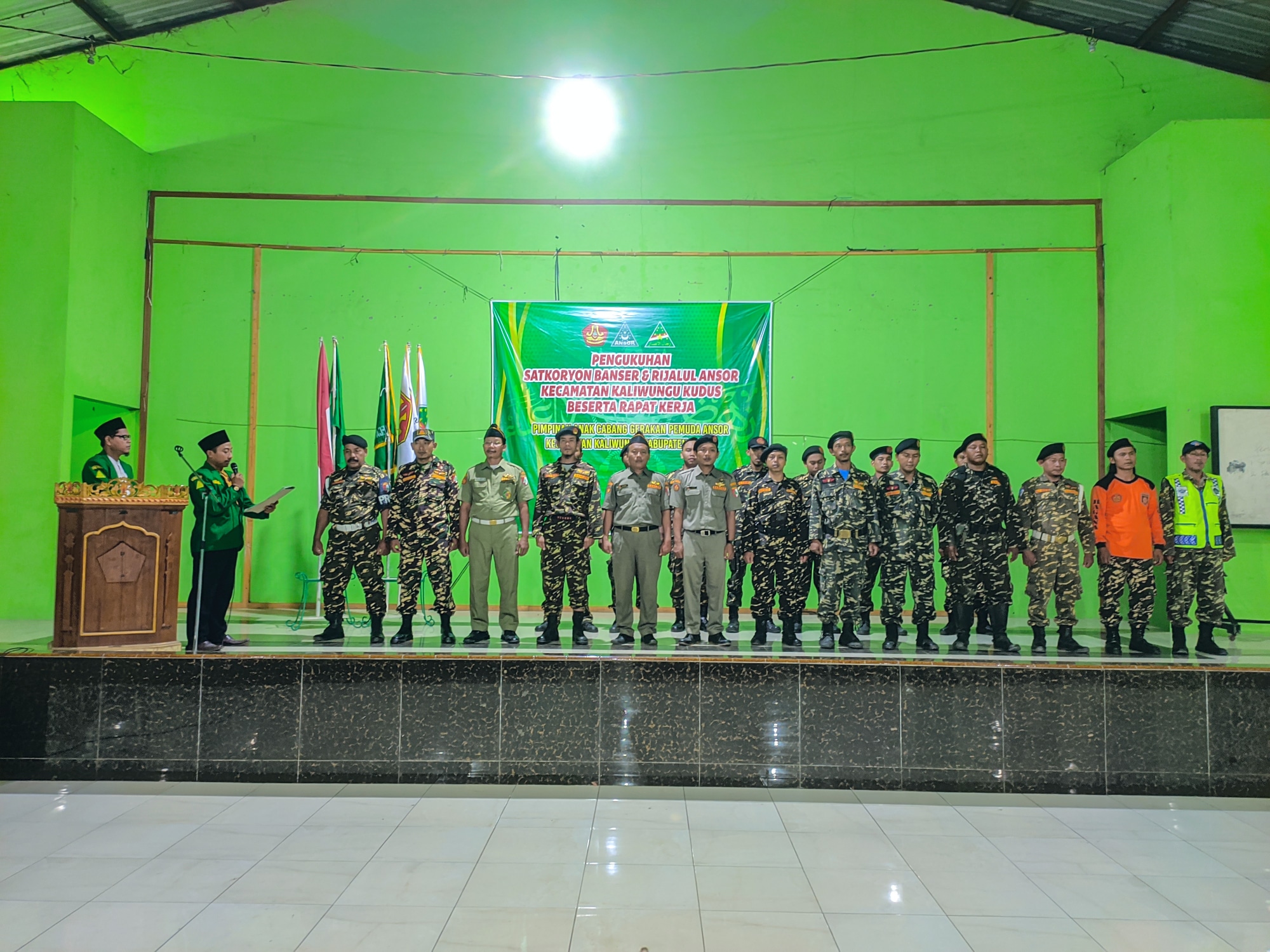 KUDUS,Suaranahdliyin.com – Pimpinan Anak Cabang (PAC) Gerakan Pemuda (GP) Ansor kecamatan Kaliwungu mengukuhkan pengurus Satuan Koordinasi Rayon (Satkoryon) Pengurus Satkoryon Banser dan Majlis Dzikir – Sholawat Rijalul Ansor Kaliwungu, periode 2022-2024, di gedung MWCNU setempat, Rabu (1/6/2022.