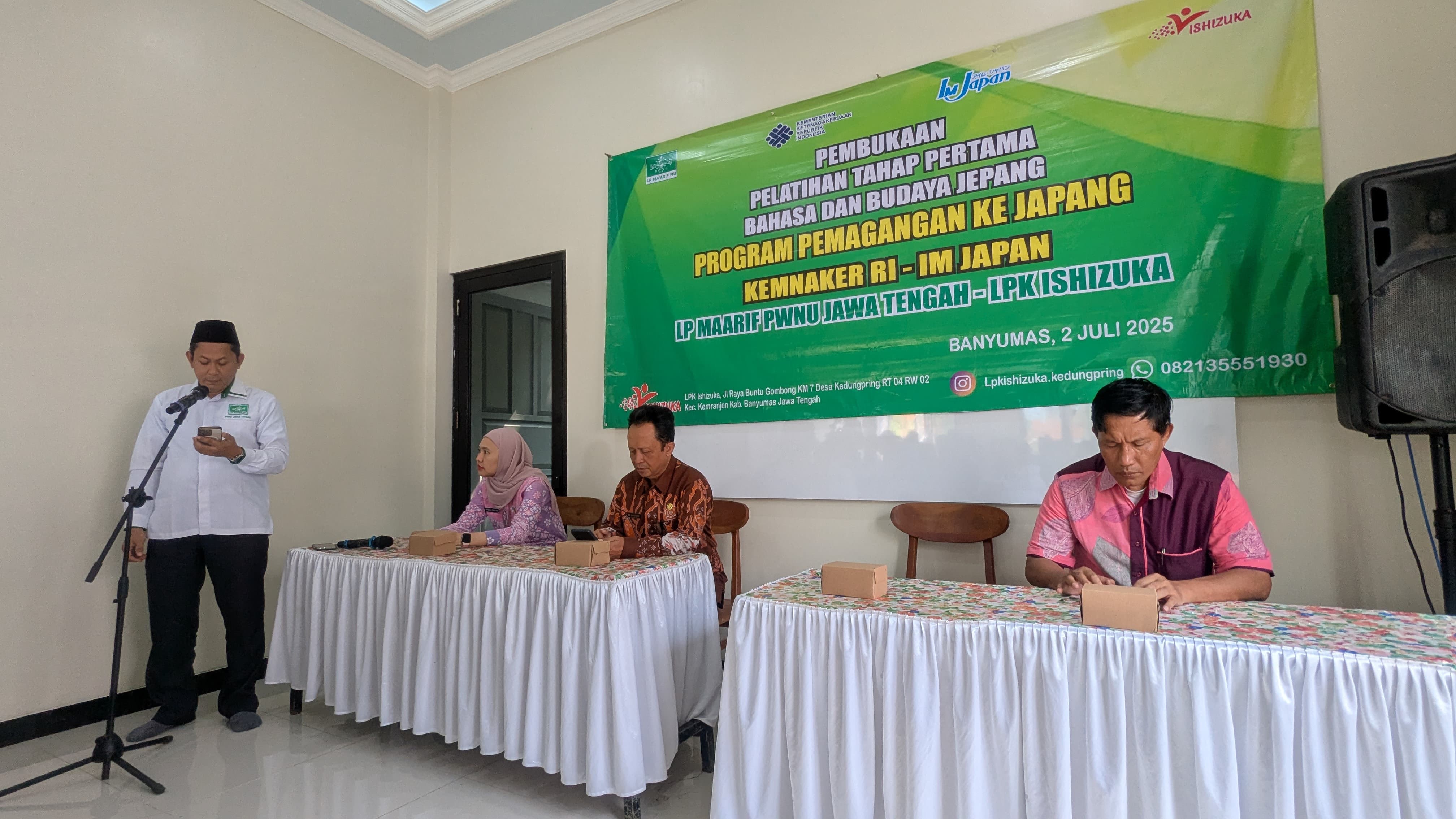 BANYUMAS,Suaranahdliyin.com – Ketua Lembaga Pendidikan (LP) Ma’arif NU PWNU Jawa Tengah Fakhruddin Karmani membuka Pelatihan Pertama Program Magang Jepang di LPK ISHIZUKA Banyumas, Rabu (02/07/25), Pelatihan pertama ini diikuti oleh 20 peserta alumni SMK Ma’arif yang sudah lulus seleksi Administrasi dan Screening awal.
