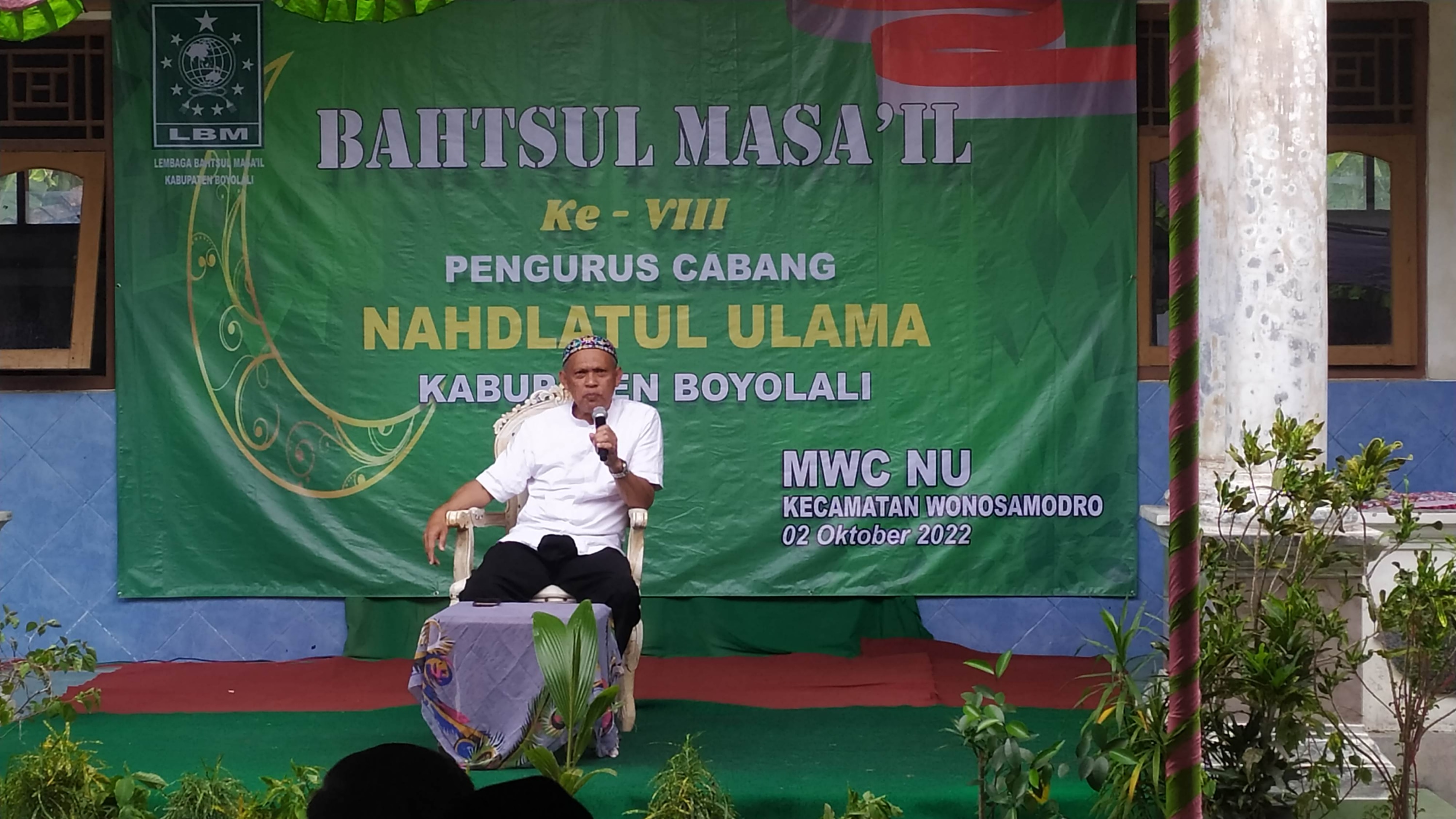 Ketua Majelis Wakil Cabang (MWC) NU Wonosamudro, Kiai Yunsoni, mengapresiasi para peserta bahsul masail yang datang dari delegasi setiap MWC NU, pesantren, Muslimat, Ansor, Fatayat, IPNU, IPPNU, dan masyarakat.