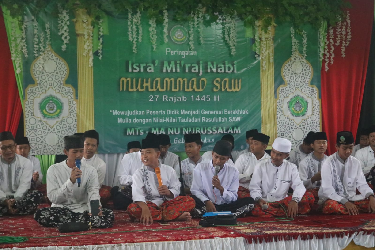 Peringatan Isra’ Mi’raj MTs-MANU Nurussalam ini berlangsung sangat meriah. Kegiatan yang melibatkan peserta didik, dewan guru beserta staf madrasah diawali dengan pembacaan maulid habsy, kalam ilahi, dan pembacaan shalawat Nabi bersama iringan rebana dari group madrasah Nurussalam sendiri.(umi Saidah/adb)