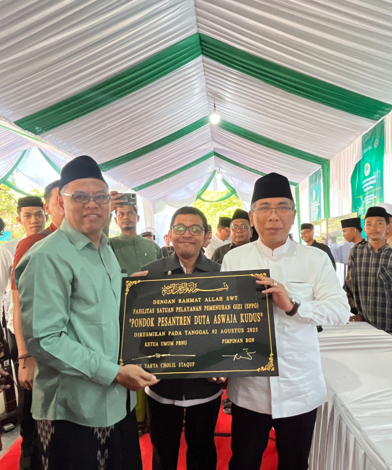KUDUS, Suaranahdliyin.com – Satuan Pelayanan Pemenuhan Gizi (SPPG) pada Pondok Pesantren (Ponpes) Duta Aswaja, Kudus, diresmikan oleh Ketua Umum (Ketum) Pengurus Besar Nahdlatul Ulama (PBNU) KH Yahya Cholil Staquf (Gus Yahya) dan Pimpinan Badan Gizi Nasional, Nurzaini, Sabtu (2/8/2025).
