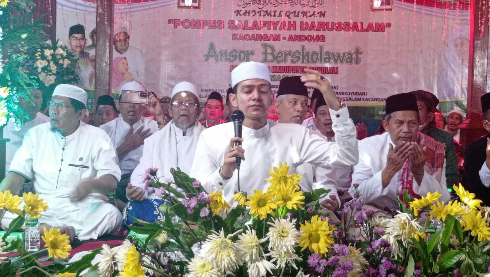 BOYOLALI, Suaranahdliyin.com – Rinai mengiringi gelaran GP Ansor Boyolali Bershalawat, dalam rangka Khatmil Quran dan Haul Masyayikh di Pondok Pesantren (Ponpes) Salafiyah Darussalam, Kacangan, Andong, Senin (14/3/2022) malam kemarin.