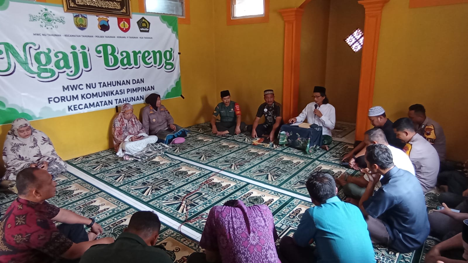 Ajakan tersebut disampaikannya usai mengaji kitab Mau’idhatul Mukminin di hadapan Camat Tahunan, Nuril Abdillah, SSTP MM, Kapolsek Tahunan AKP Sri Retno Biyanti SH, Pjs Danramil 11 Tahunan Serka Seno Priyambodo, Sertu Munasir dan unsur Forkopimcam lainnya.