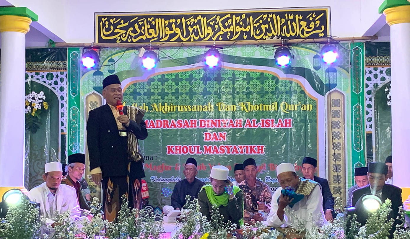 “Orang tua mestinya mendukung pendidikan agama anaknya melalui DUIT: Doa, Usaha, Iman, dan Tawakal,” tuturnya dalam pengajian umum Akhirussanah, Khatmil Qur’an Madrasah Diniyah (Madin) Al Islah, dan Haul Masyayikh Dusun Kedungbulu, Desa Kedungpilang, Kecamatan Wonosamodro, Kabupaten Boyolali, Ahad (21/04/2024) lalu.