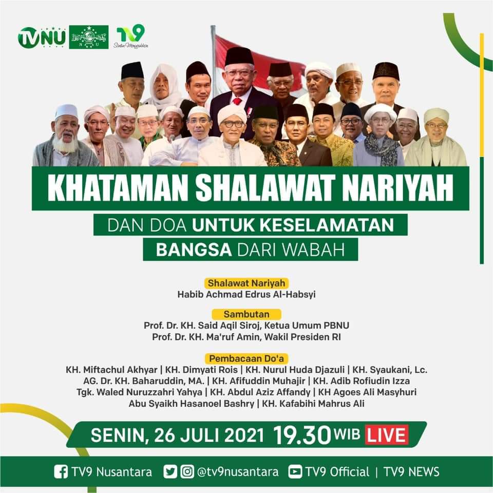 Khataman shalawat nariyah dan doa untuk keselamatan bangsa, ini dilangsungkan pada Senin (26/7/2021) pukul 19.30 hingga pukul 21.20 WIB.