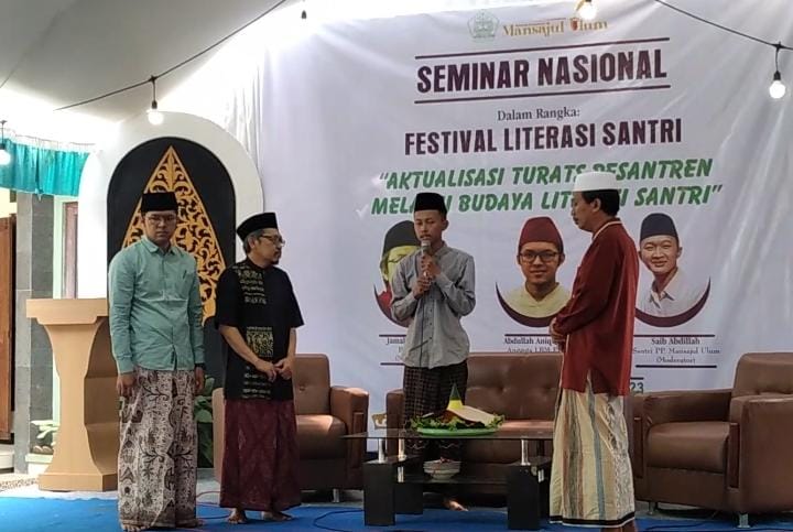 PATI, Suaranahdliyin.com – Sebanyak 65 santri/ santriyah dari berbagai kabupaten/ kota di Jawa Tengah, Jawa Timur dan Jawa Barat mengikuti festival literasi santri yang diselenggarakan oleh Pondok Pesantren (Ponpes) Mansajul Ulum, Cebolek, Kajen, Pati pada Sabtu (26/8/2023).