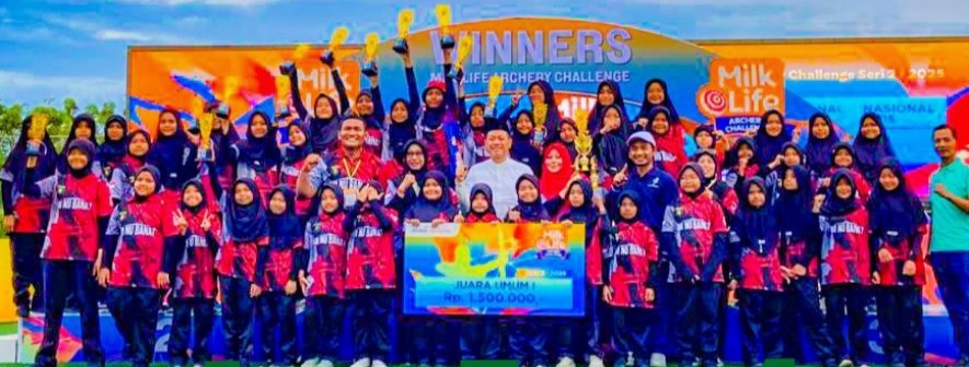KUDUS,Suaranahdliyin.com – Kontingen MINU Banat Kudus berhasil meraih juara umum Milk life Archery Challenge Seri 2 Tahun 2025 di Super Soccer Arena (SSA) Kudus, Rabu-Sabtu (12-15/11/2025) kemarin. Dalam kejuaraan yang mempertandingkan cabang olah raga panahan itu, mereka mampu mengumpulkan prestasi juara terbanyak.