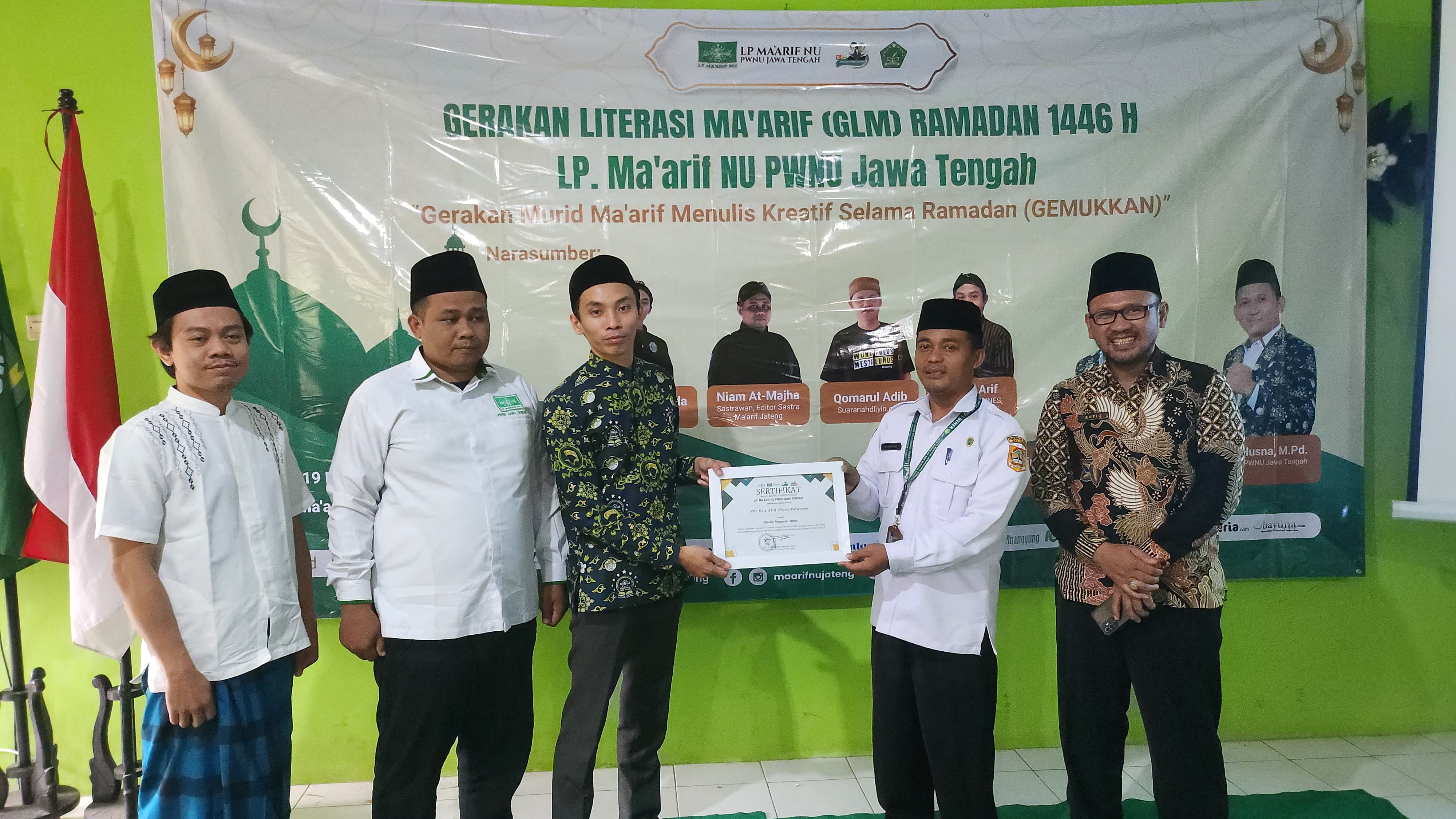 Kegiatan GLM Ramadan tersebut mengusung tema Gerakan Murid Ma’arif Menulis Kreatif Selama Ramadan (GEMUKKAN) yang dihadiri puluhan siswa, guru SMK Ma’arif NU 01 Bener, dan perwakilan MA. An-Nawawi.