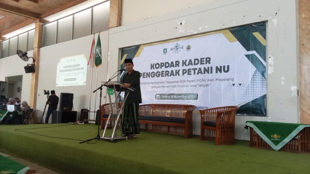 MAGELANG,Suaranahdliyin.com – Lembaga Pengembangan Pertanian Nahdlatul Ulama (LPPNU) Kabupaten Magelang, bekerja sama dengan Balai Pelatihan Pertanian (Bapeltan) Provinsi Jawa Tengah menggelar Kopi darat (Kopdar) Kader Penggerak Petani NU, Selasa (18/11/2025). Kegiatan yang berlangsung di Aula Kartika Nawa, Gedung PCNU Kabupaten Magelang diikuti ratusan kader petani NU setempat.