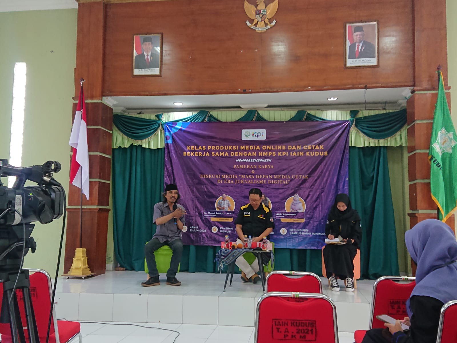 KUDUS,Suaranahdliyin.com – Himpunan Mahasiswa Program Studi (HMPS) Komunikasi Penyiaran Islam (KPI) IAIN Kudus mengelar Pameran Karya dan Diskusi Media, Kamis (23/06/2022). Mengusung tema “Masa Depan Media Cetak di Era Jurnalisme Digital”, acara di Gedung PKM Kampus Barat IAIN Kudus.dengan p0eserta 125 mahasiswa KPI semester 6.