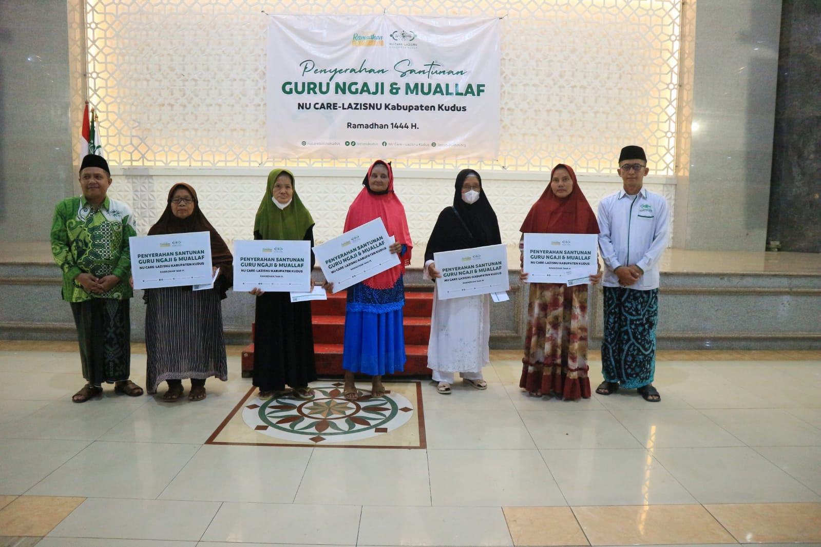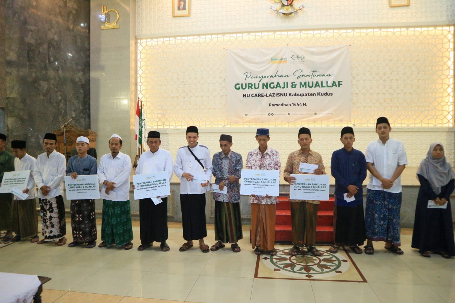 KUDUS, Suaranahdliyin.com – NU CARE – LAZISNU Kudus menyalurkan santunan kepada 1347 Guru Ngaji dan 20 Muallaf se-Kudus, Ahad (16/4/2023). Bertempat di Aula JHK Kudus, santunan secara simbolis diserahkan Ketua NU CARE – LAZISNU Kudus Kudus, H M Ihdi Fahmi, Sekretaris PCNU Kudus, H Kisbiyanto, dan Katib Syuriah PCNU Kudus, KH Amin Yasin.