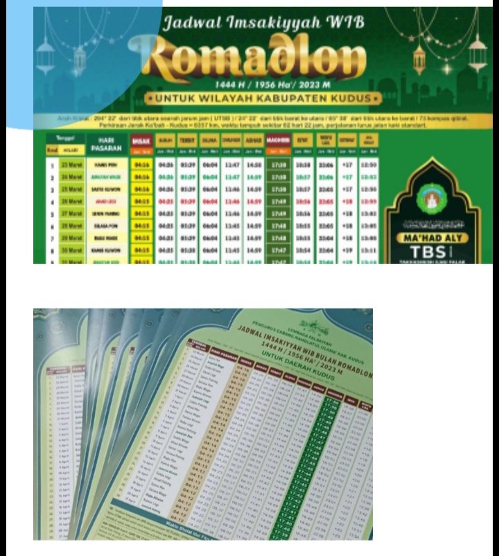 KUDUS, Suaranahdliyin.com – Menjelang Ramadan 1444 H/ 2023 M, Lembaga Falakiyah Nahdlatul Ulama (LFNU) Kabupaten Kudus dan Ma’had Aly Tasywiquth Thullab Salafiyah (TBS) Kudus akan membagikan ribuan jadwal imsakiyyah.