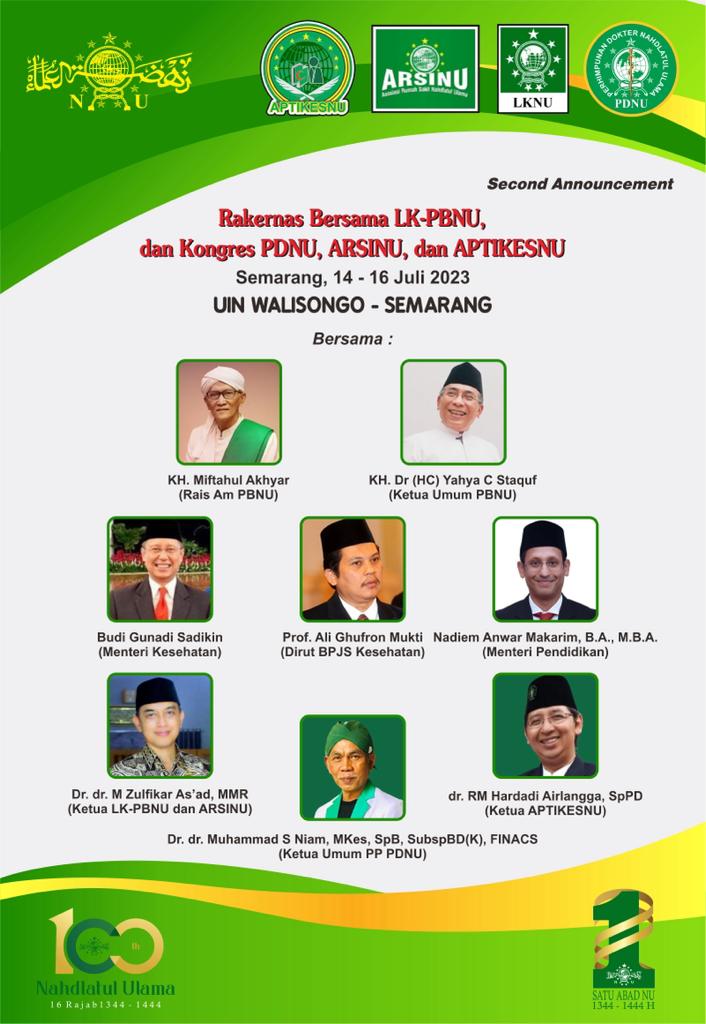 Kegiatan ini akan dihadiri antara lain KH Miftahul Akhyar (Rais Am PBNU), KH Dr (Hc) Yahya C Staquf (Ketua Umum PBNU), Budi Gunadi Sadikin (Menteri Kesehatan), Nadiem A Makarim BA MBA (Menteri Pendidikan), serta Prof Ali Ghufron Mukti (Dirut BPJS Kesehatan).