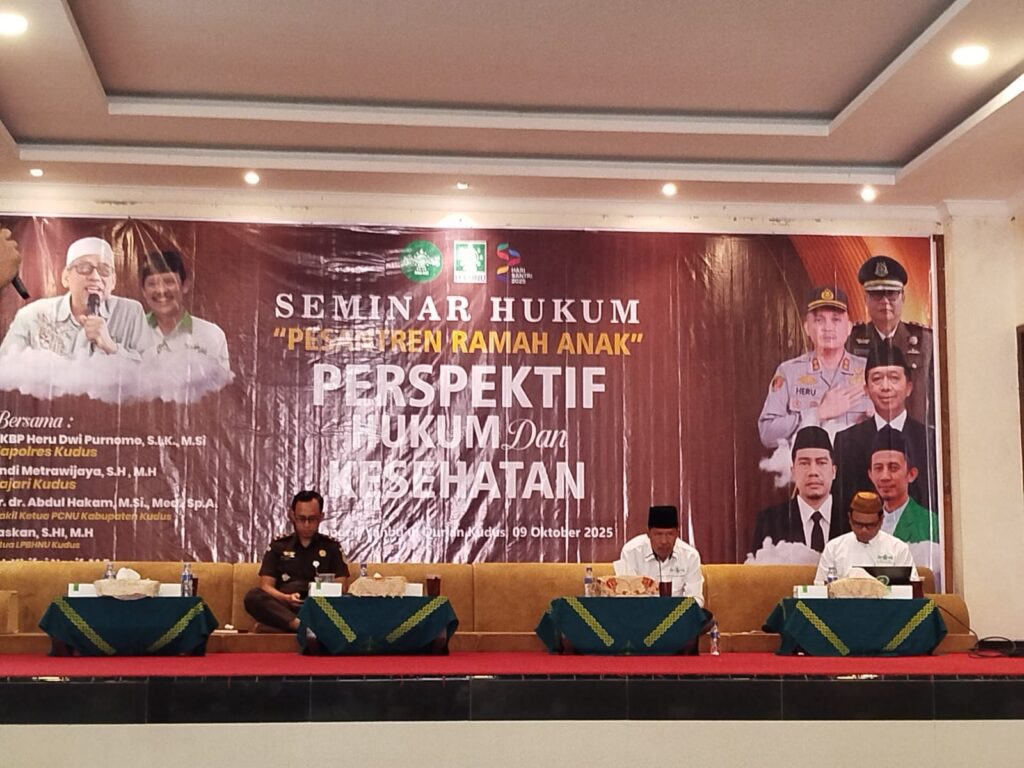 KUDUS, Suaranahdliyin.com – Lembaga Penyuluhan dan Bantuan Hukum Nahdlatul Ulama (LPBHNU) dan Rabithah Maahid Islamiyah Nahdlatul Ulama (RMI NU) Pengurus Cabang Nahdhatul Ulama (PCNU) Kudus Jawa Tengah, menggelar Seminar Hukum “Pesantren Ramah Anak” Perspektif Hukum dan Kesehatan.