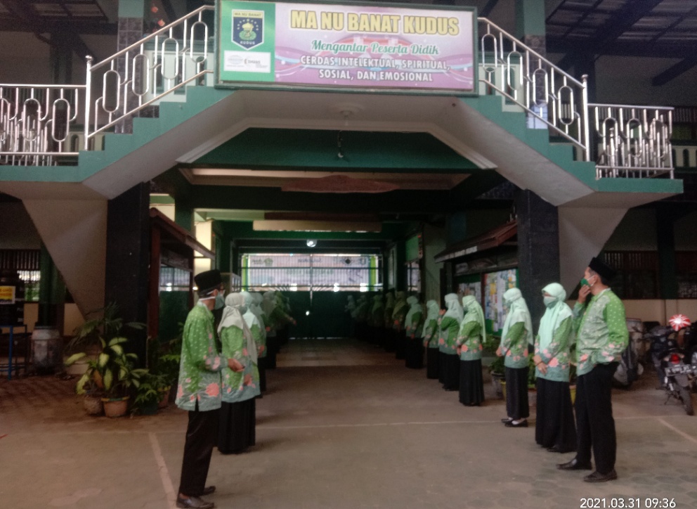 Untuk mempersiapkan agar sukses dalam uji coba PTM, pihak MA NU Banat Kudus, Rabu (31/3/2021) pagi menyelenggarakan simulasi, agar PTM yang merupakan uji coba tahap pertama di Jateng ini, berjalan dengan baik. (adb/ ros)