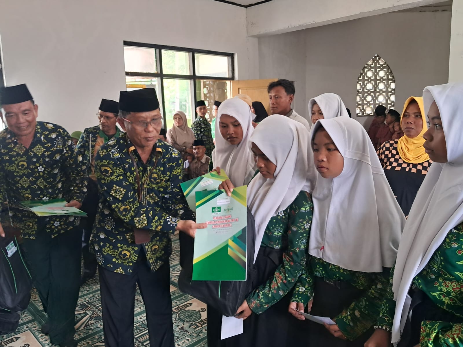 Suasana ceria nampak dari wajah para siswa dan para wali siswa penerima donasi dari LP Ma’arif NU PCNU Kabupaten Brebes dan PAC Muslimat NU kec.Bulakamba ..