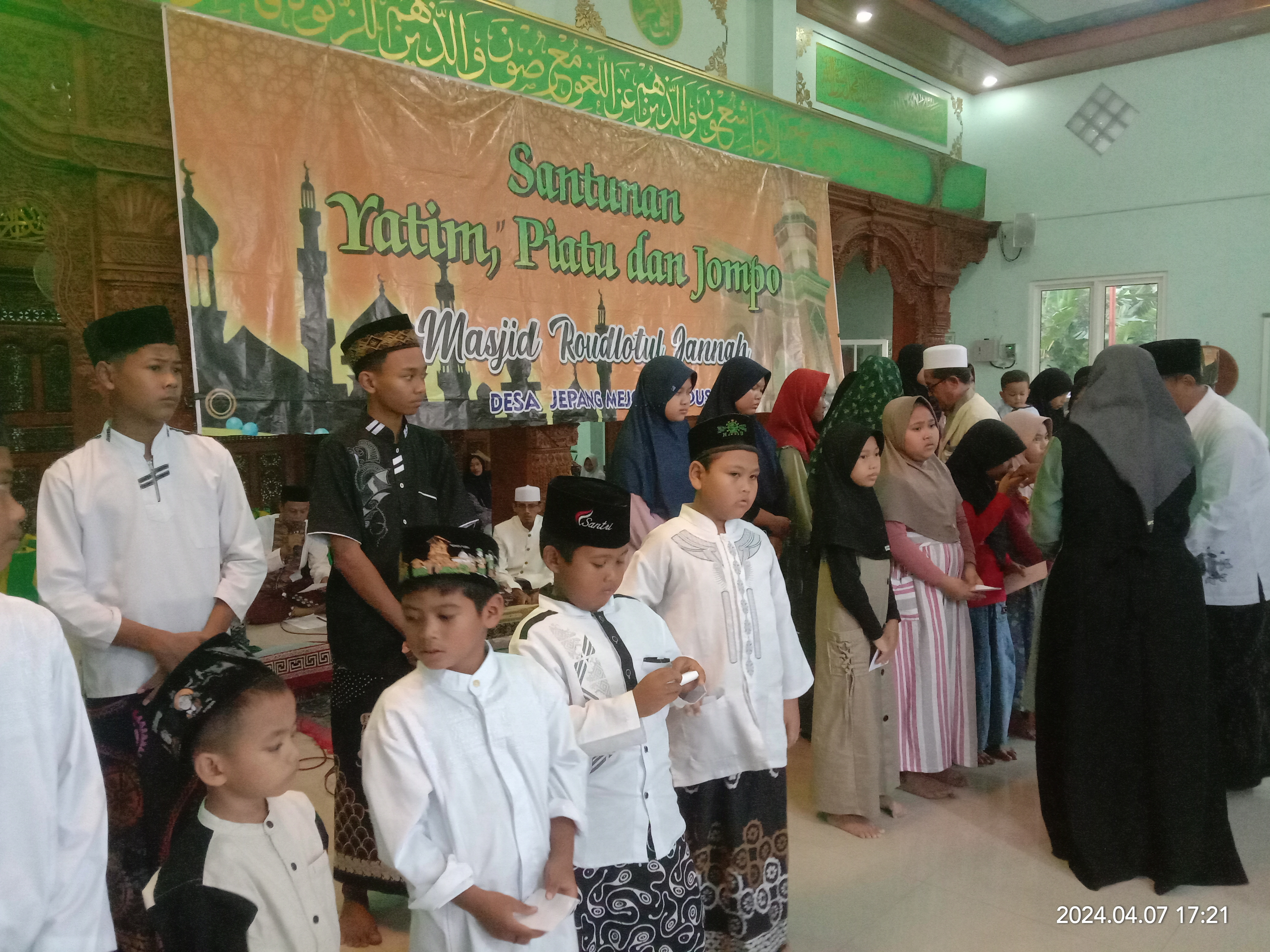 Santunan tersebut digelar, didukung oleh para aghniya dan dermawan, khususnya di sekitar Masjid Roudlotul Jannah.