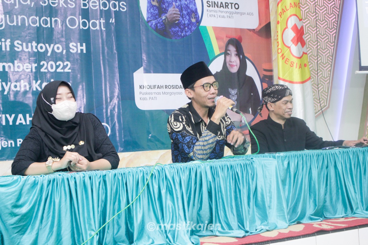 Sinarto dari Komisi Penanggulan Aids (KPA) Kabupaten Pati dan Kholifah Rosidah AMK (Puskesmas Margoyoso I Kabupaten Pati yang bertanggung jawab dalam Program Pengendalian Pencegahan Penyakit Menular atau P2PM), dihadirkan sebagai narasumber pada kesempatan itu.