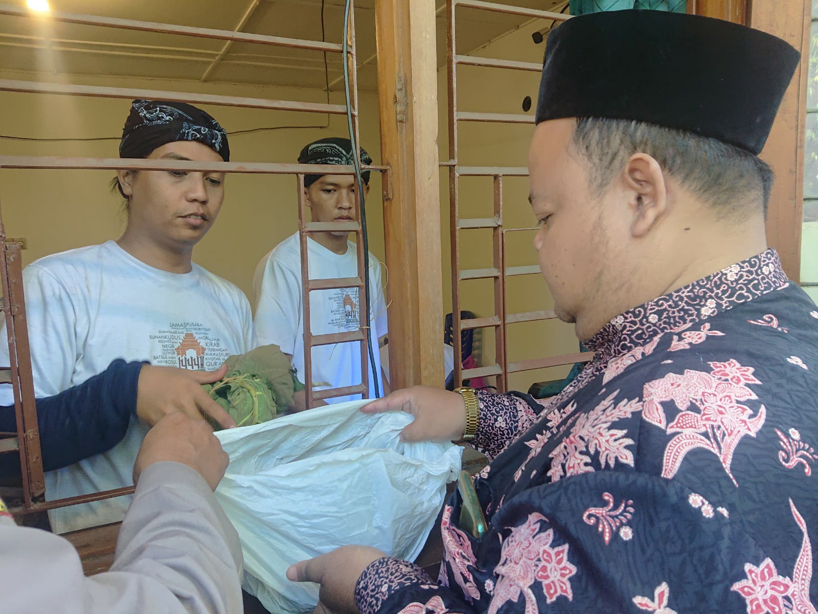 KUDUS, Suaranahdliyin.com – Puncak buka luwur Sunan Kudus, panitia membagikan nasi berkat dengan dua jenis yakni nasi uyah asem dan nasi jangkrik goreng untuk masyarakat Kudus, Senin (8/8/2022).