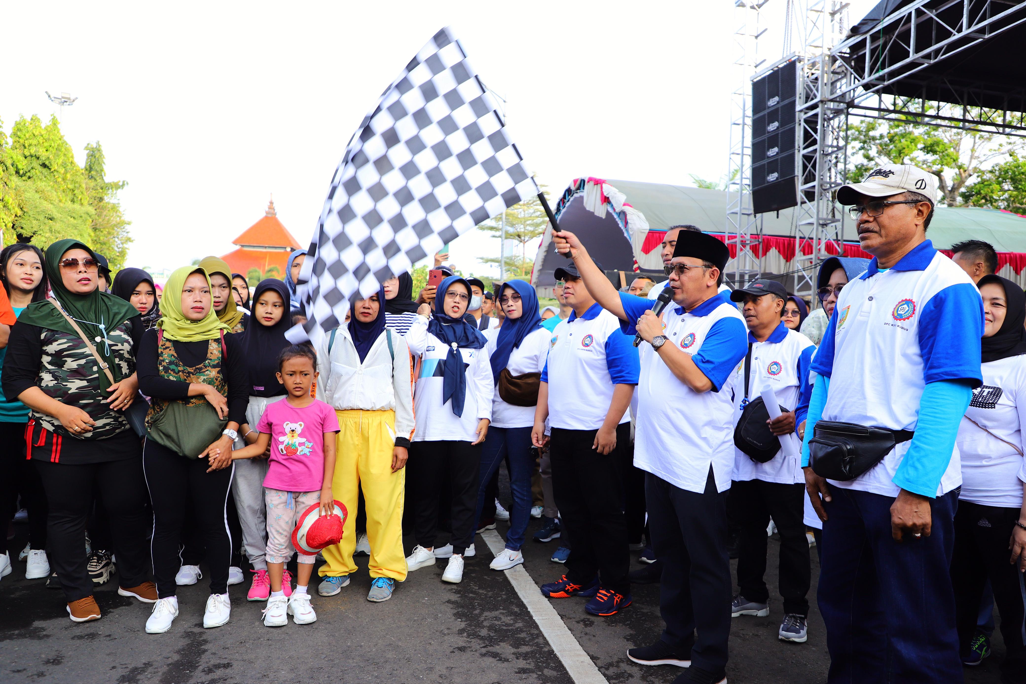 M Hasan Chabibie membuka jalan santai itu, memgutarakan, bahwa Pemkab Kudus mendukung penuh peningkatan kesejahteraan pekerja di Kudus.