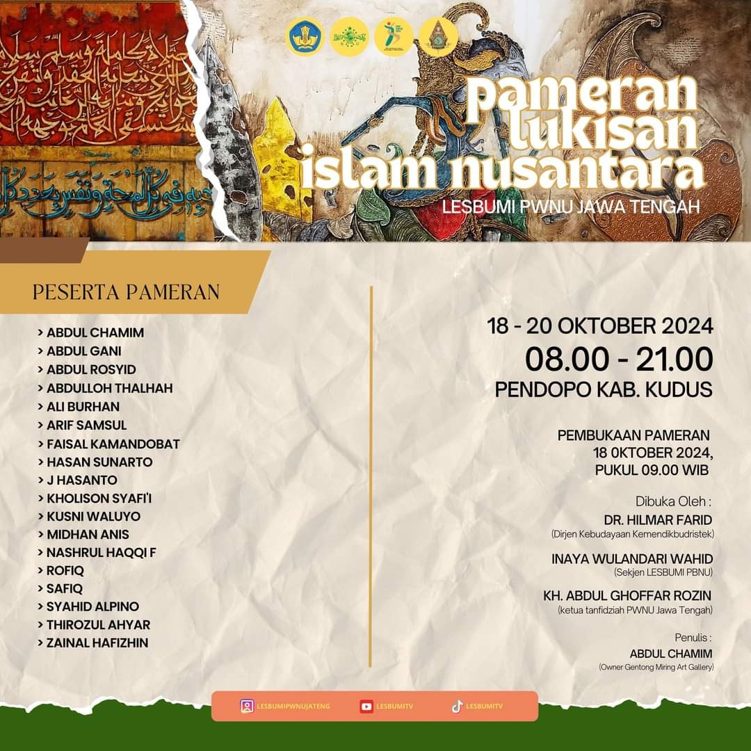 “Mematri Tradisi kebudayaan menegukuhkan peradaban bangsa” menjadi tema pada pagelaran pameran lukisan kali pertama oleh Lembaga Seniman Budayawan Muslimin Indonesia (LESBUMI) PWNU Jawa Tengah.
