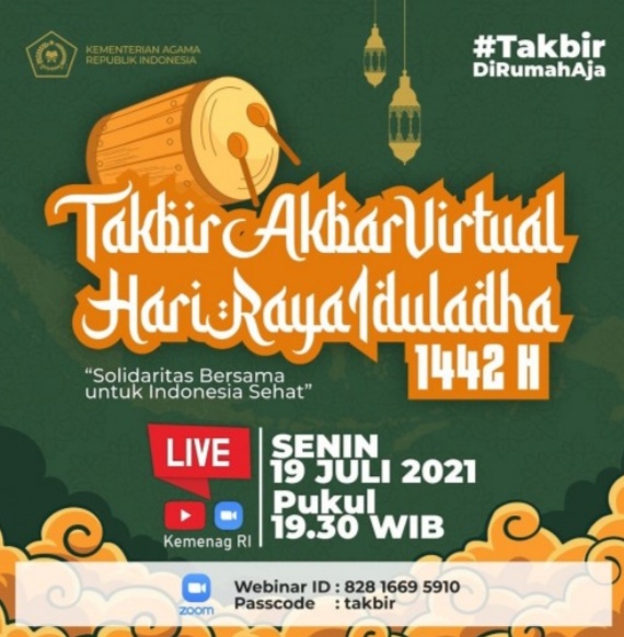 Takbir virtual ini mengusung tema “Solidaritas Bersama untuk Indonesia Sehat’ dengan hastag #TakbirDiRumahAja.
