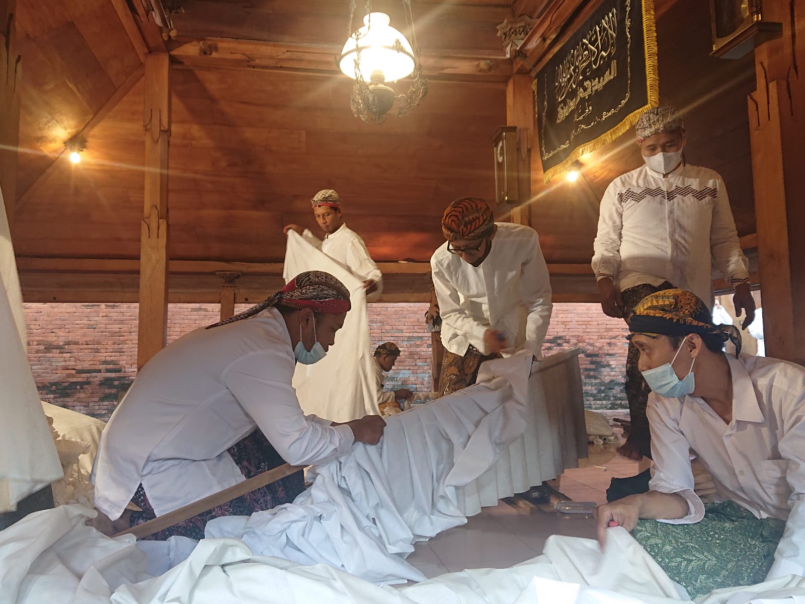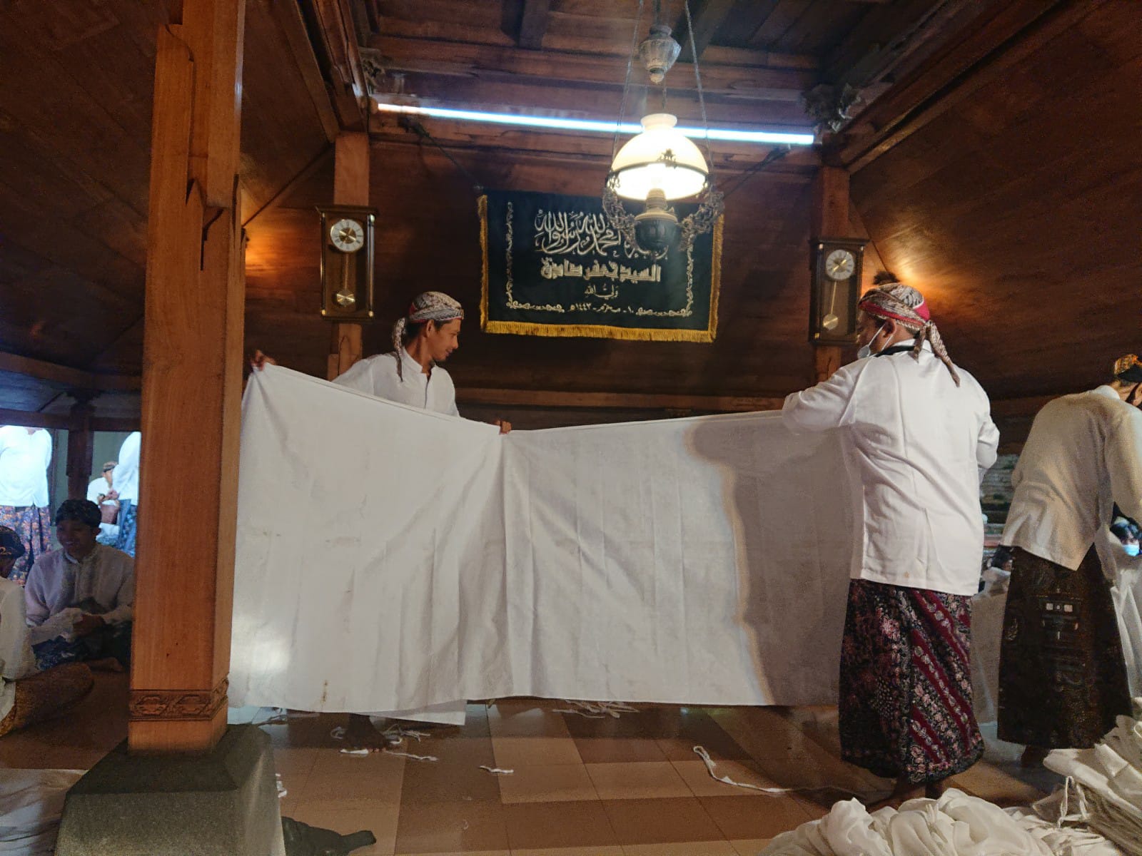 “Intinya ini adalah kain yang penuh dengan doa, menurut keyakinan masyarakat membawa berkah. Oleh karenanya, semua panitia harus dalam keadaan wudhu selama prosesi pelepasan kain,” jelasnya.