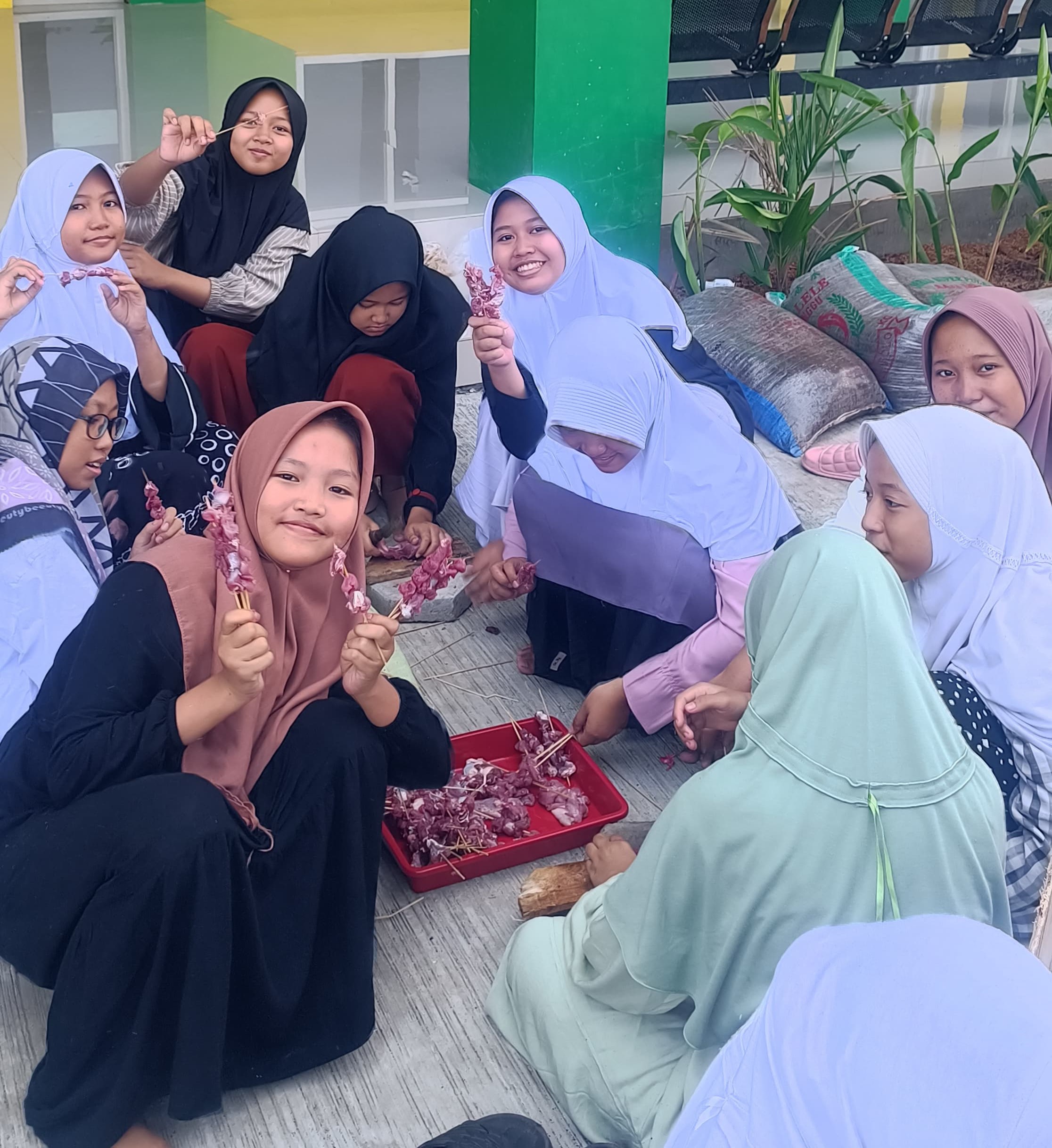 “Masing-masing kamar diberikan daging, kemudian nanti santri diminta nyate sendiri, tetapi tusuk, bumbu, dan lain-lain sudah kami sediakan, sehingga para santri tinggal menusuki dan membakar atau nyate sendiri,” ungkapnya.