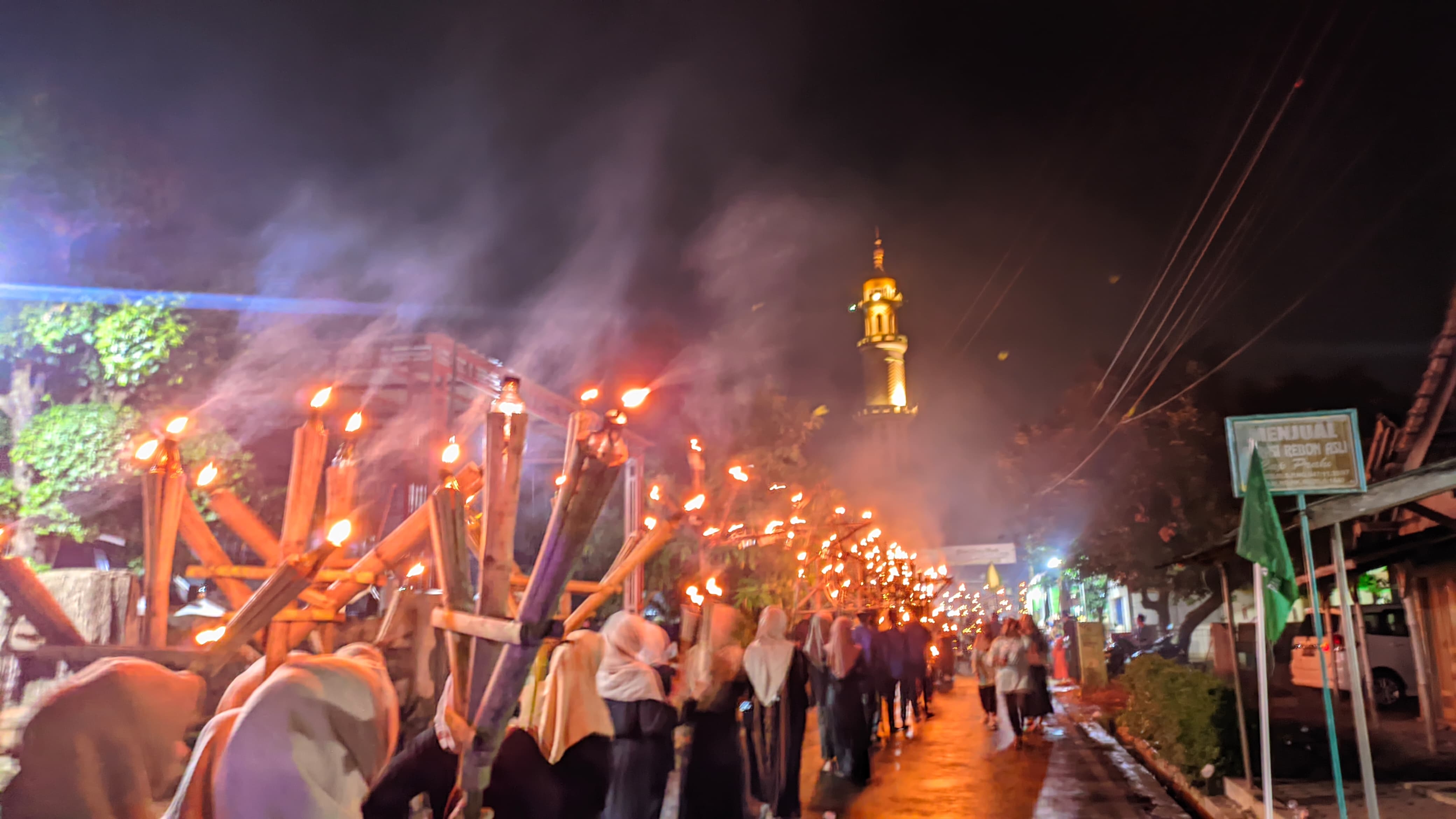 Sedikitnya 3.000 warga dari seluruh elemen masyarakat, pemerintah desa, dan tokoh masyarakat membawa obor sambil mengumandangkan takbiran sepanjang jalan desa setempat.