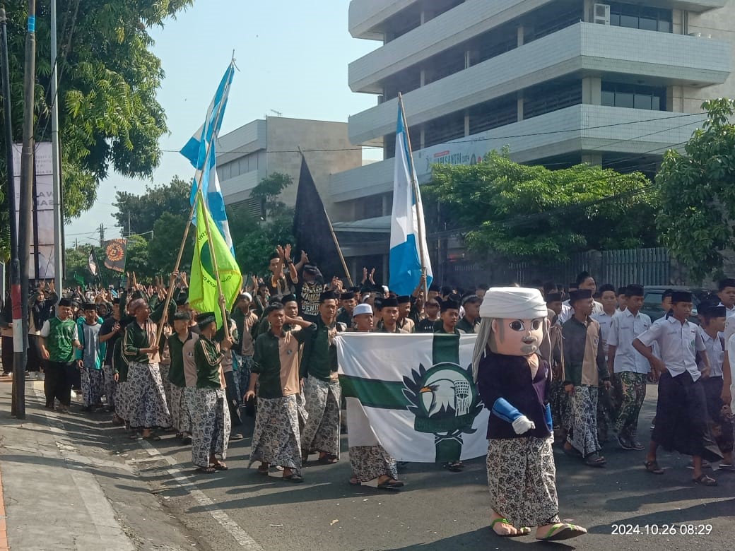 KUDUS, Suaranahdliyin.com – Puluhan ribu santri dari berbagai Pondok Pesantren (Ponpes) dan madrasah/ sekolah yang ada di Kabupaten Kudus, memeriahkan Mlaku-mlaku dalam rangka Hari Santri Nasional 2024, Sabtu (26/10/2024).