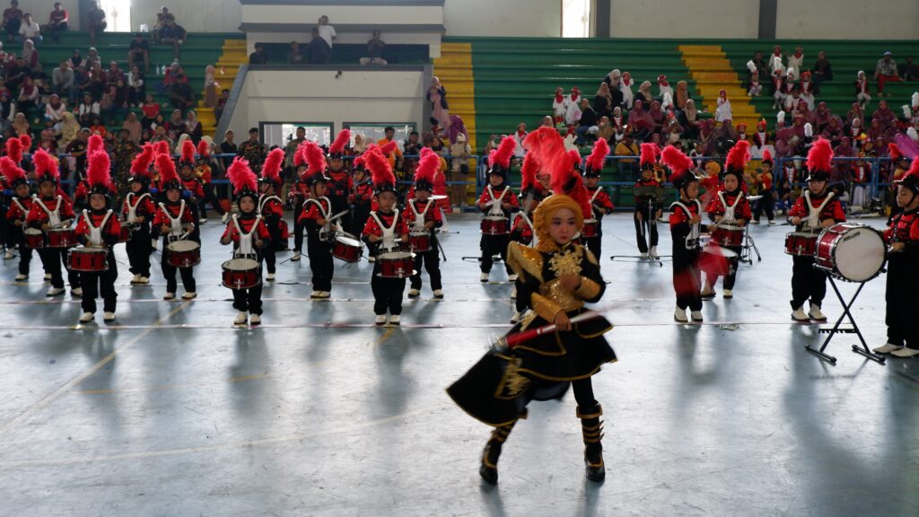 Suasana GOR Pesantenan tampak semarak dengan dentuman drumband yang dibawakan dengan penuh semangat oleh para siswa TK-RA, mencerminkan optimisme masa depan generasi muda di Bumi Mina Tani.