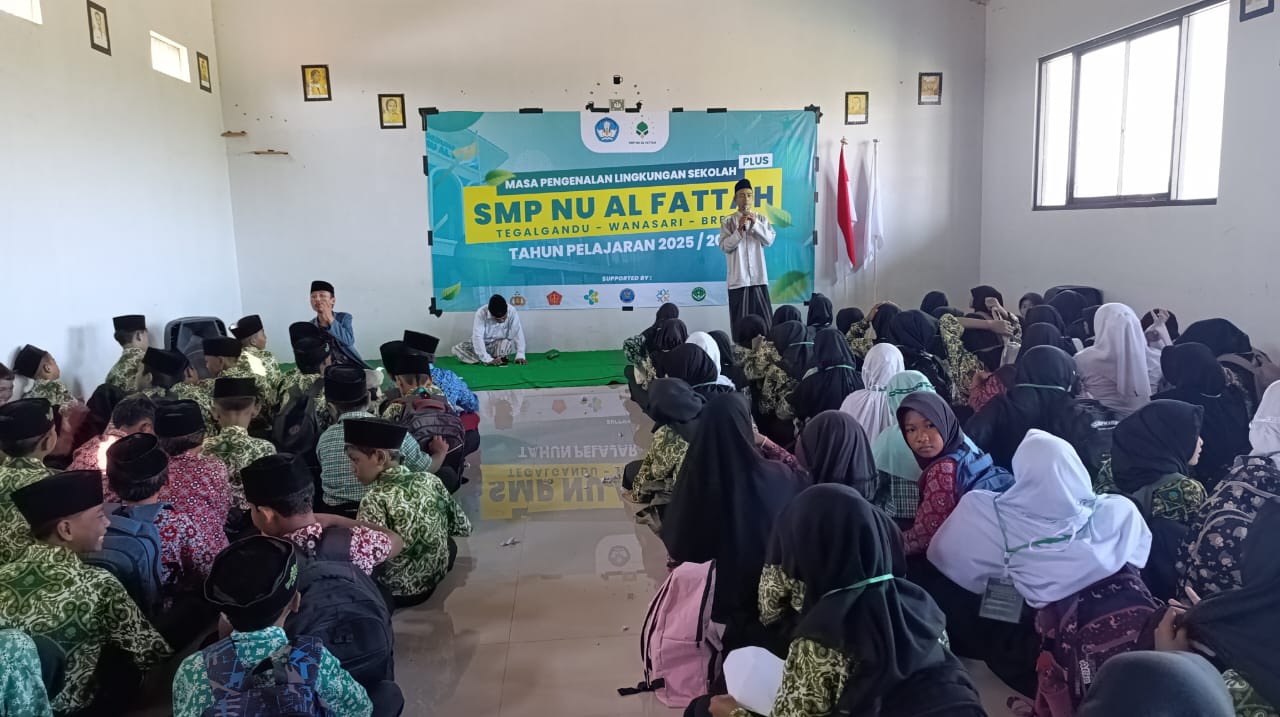 BREBES,Suaranahdliyin.com – Sebanyak 211 murid baru SMP NU Al Fattah Tegalgandu Wanasari Brebes mengikuti Masa Pengenalan Lingkungan Sekolah (MPLS) di aula sekolah setempat, belum.lama ini. Mereka diperkenalkan dengan beberapa program sekolah antara lain kebiasaan beribadah dan program kegiatan lainnya.