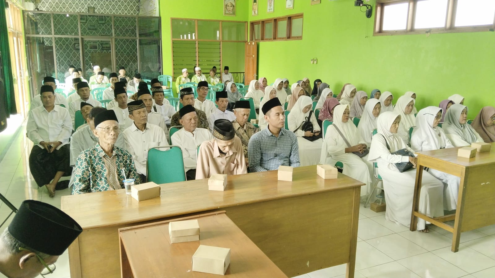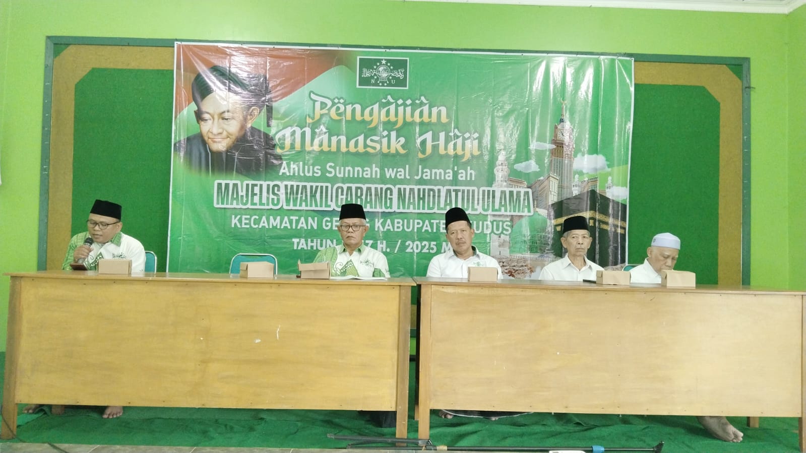 KUDUS,suaranahdliyin.com – Tahun ini, pengurus Majelis Wakil Cabang Nahdlatul Ulama (MWCNU) Kecamatan Gebog Kudus kembali memulai kegiatan pengajian Manasik Haji Ahlussunah Wal Jamaah (Aswaja), Jum’at (8/7/2025). Bertempat di gedung MWCNU setempat itu, pengajian manasik haji diikuti puluhan calon haji (calhaj) yang akan berangkat tahun 2026 se-Gebog.