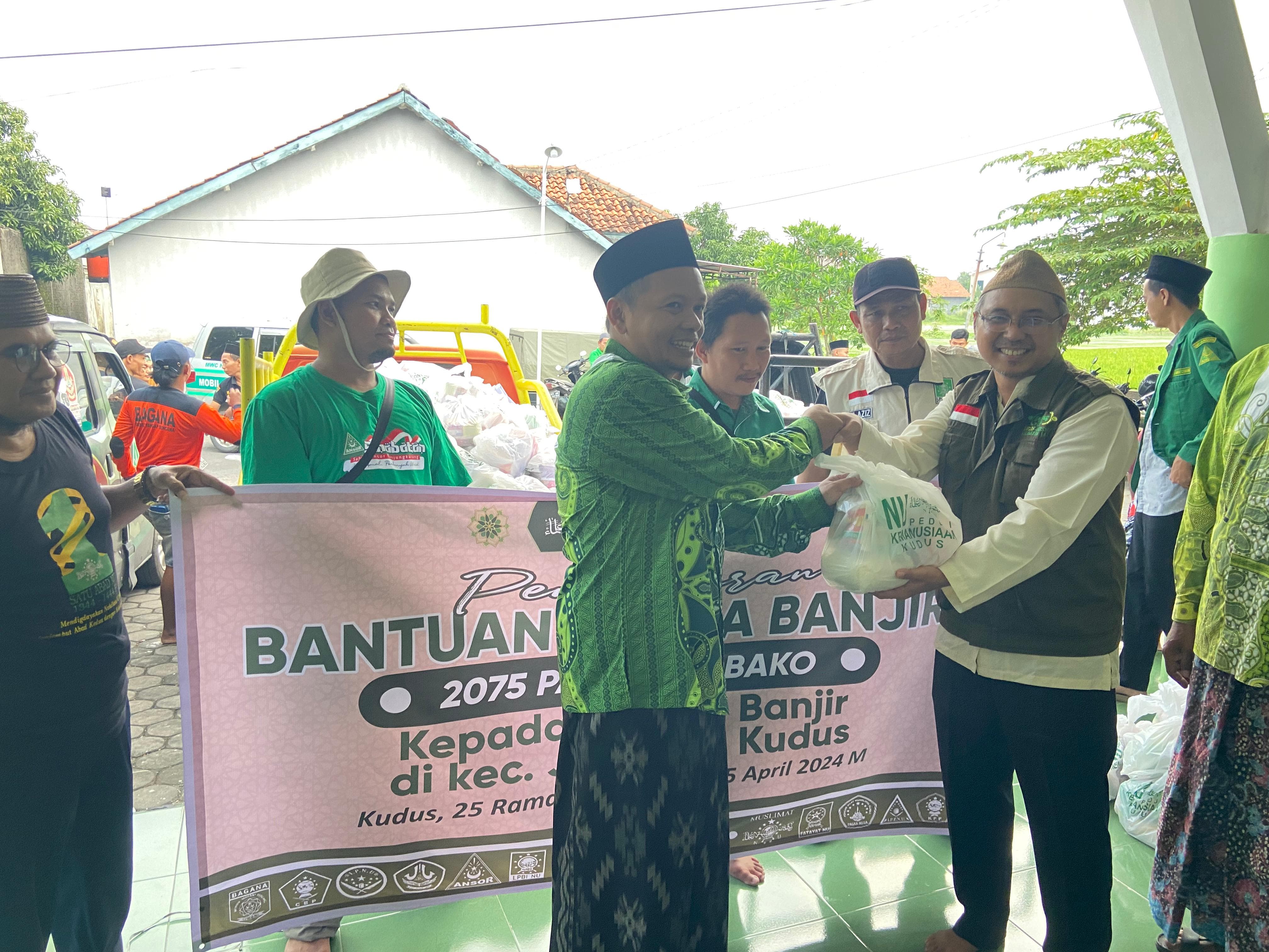 Ia menambahkan bantuan diperuntukkan bagi warga terdampak banjir di 5 ranting/desa, yaitu Jeti Kapuan 800 paket sembako, Tanjungkarang 450, Jati Wetan 450 paket sembako, Dukuh Goleng desa Pasuruhan Lor sejumlah 300 paket sembako, dan Dukuh Kencing desa Jati Kulon sejumlah 65 paket sembako.