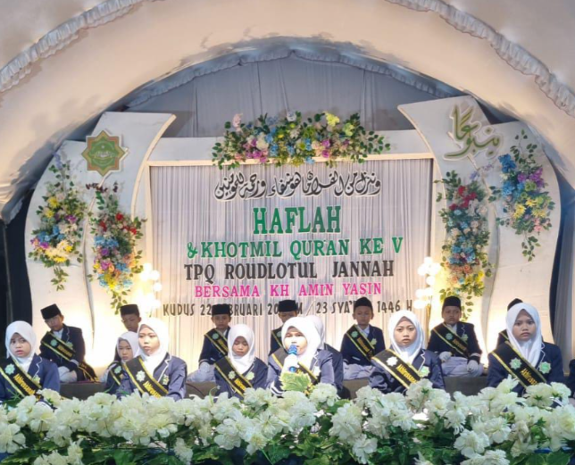 KUDUS, Suaranahdliyin.com – Taman Pendidikan Al-Qur’an (TPQ) dan Tahfidhul Qur’an Roudlotul Jannah Besito, Gebog, Kabupaten Kudus menyelenggarakan Haflah dan Khotmil Qur’an ke-5 pada Sabtu (22/2/2025) malam lau.