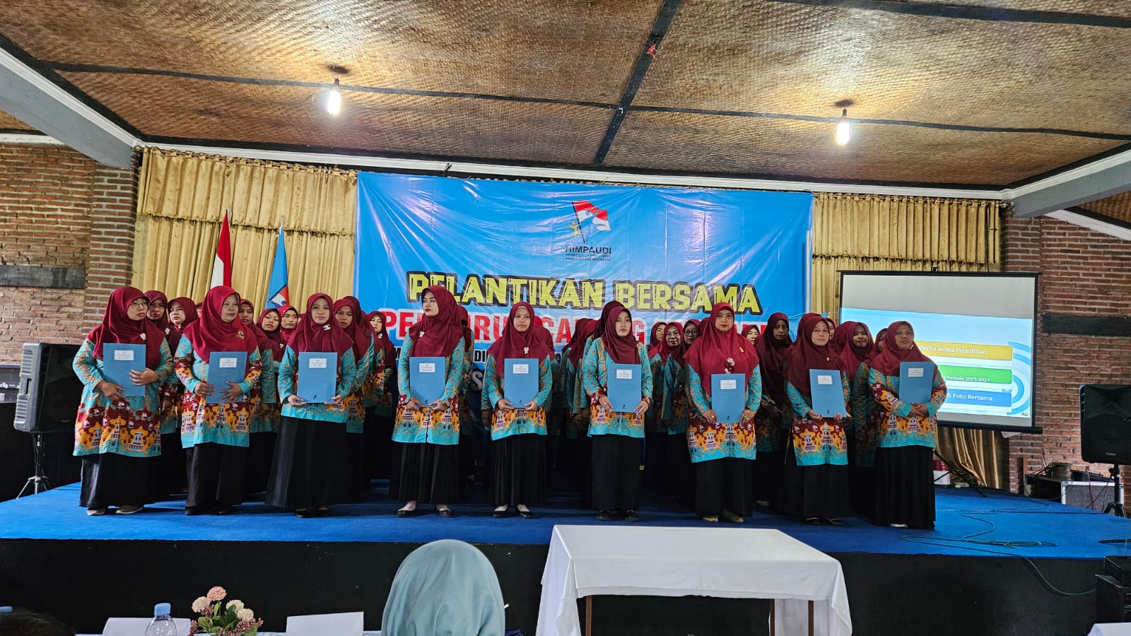 Pelantikan bersama pengurus PC Himpaudi se Kabupaten Kudus, itu digelar di RM Kampung Sawah, Kecamatan Undaan, Kabupaten Kudus.