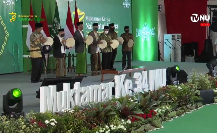 Pembukaan Muktamar NU tersebut ditandai dengan tabuh terbang oleh Presiden RI tersebut, antara lain didampingi Wakil Presiden (Wapres) RI, KH Ma’ruf Amin serta perwakilan tokoh dan ulama NU.